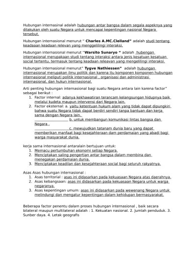 Penyimpangan politik luar negeri pada masa orde baru salah satu contohnya adalah membekukan hubungan dengan cina yang diduga berhubungan dengan g30/s/pki. Menunjang suatu sistem dari keamanan bangsa dan juga negara. Pentingnya hubungan internasional bagi suatu bangsa berkaitan dengan manfaat yang diperoleh dalam menjalin hubungan internasional tersebut. hubungan tersebut dapat berupa suatu interaksi antarindividu (misalnya turis, mahasiswa, serta jugapekerja asing); Pentingnya hubungan internasional bagi suatu bangsa berkaitan dengan manfaat yang diperoleh dalam menjalin hubungan internasional tersebut. Meningkatkan perdamaian internasional karena hanya dalam keadaan damai, indonesia dapat membangun dan meningkatkan kemakmuran rakyat. Beberapa manfaat yang dapat diperoleh oleh bangsa indonesia antara lain sebagai berikut. Padahal indonesia menganut polugri bebas aktif 2. Play this game to review business. Pentingnya hubungan internasional bagi suatu bangsa berkaitan dengan manfaat yang diperoleh dalam menjalin hubungan internasional tersebut. 100% (5) 100% menganggap dokumen ini bermanfaat (5 suara) 34k tayangan 1 halaman. Diketahui, setiap negara memiliki hubungan antar sesamanya, untuk menghindari konflik yang terjadi pun mereka melakukan sebuah kerjasama internasional. dengan menjalin kerja sama, maka akan terbentuk persahabatan yang erat dengan negara yang bekerja sama tersebut, sehingga dapat meminimalisir terjadinya konflik dengan negara yang menyetujui untuk bekerja sama.